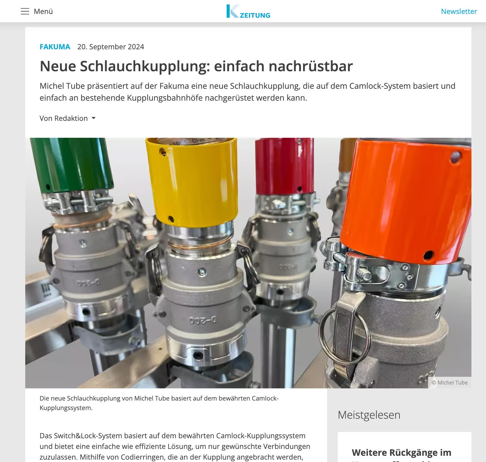 https://www.extrusion-world.com/en/detail-view/michel-tube-presents-the-new-switchlock-360-hose-coupling-at-the-k-trade-fair-2025/